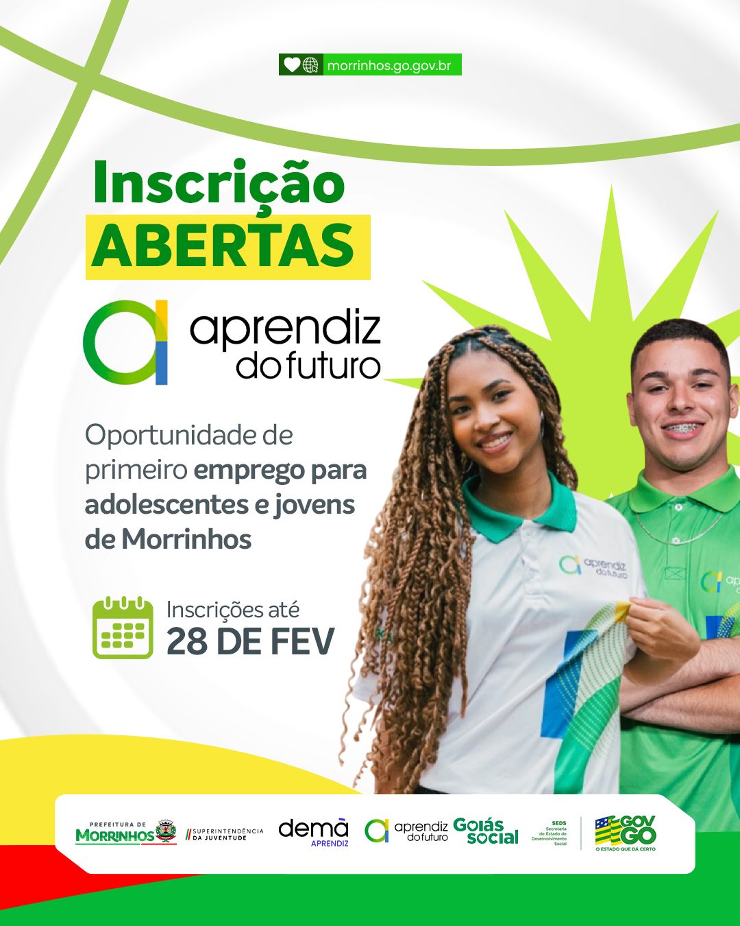 Herbert Alencar Chegou a hora de dar aquele passo importante para o seu futuro! A Prefeitura de Morrinhos traz uma notícia incrível para a galera que quer conquistar o primeiro emprego: as inscrições para o programa Aprendiz do Futuro já estão valendo. É a sua chance de aprender, trabalhar e