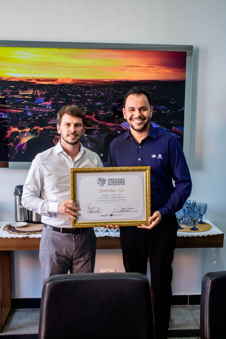 Morrinhos recebeu, nesta quarta-feira(26), um dos reconhecimentos mais importantes do país quando o assunto é gestão pública eficiente. Representantes da TV Sucesso, afiliada da Band, estiveram no município para entregar ao prefeito Maycllyn Carreiro o Prêmio Band Cidades Excelentes, após uma avaliação técnica e rigorosa que analisou indicadores oficiais de desenvolvimento socioeconômico e ordem pública.