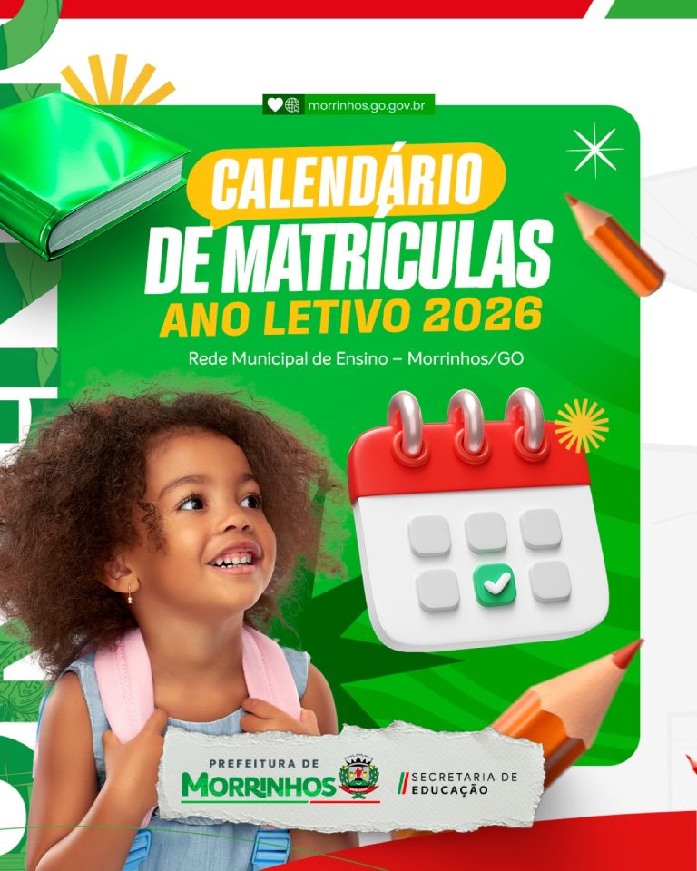 A Secretaria Municipal de Educação de Morrinhos divulgou o calendário oficial de matrículas da rede municipal de ensino para o ano letivo de 2026. O cronograma define as datas de atendimento conforme o público-alvo e deve ser seguido com atenção pelas famílias para garantir a vaga dos estudantes.